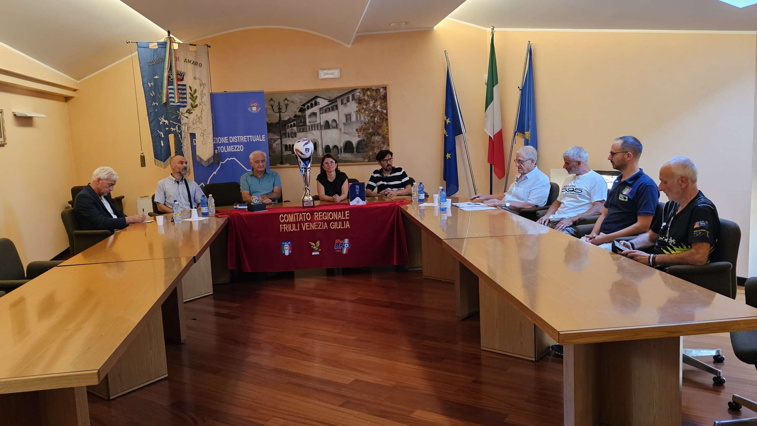 Nel tardo pomeriggio di ieri l’appuntamento è stato presentato in Municipio ad Amaro, presenti il sindaco Cristiana Mainardis e il vicesindaco Edi Mainardis, peraltro noto giocatore della squadra del paese, che quest’anno festeggia il secolo di vita. Il presidente Vittorio Zuliani nell’occasione ha consegnato alla presidente dell’Illegiana Daniela Franz e al vicepresidente del Castello Luca Floreani la sciarpa e il gagliardetto celebrativi di questi 100 anni. Hanno partecipato all’incontro anche il consigliere regionale Manuele Ferrari, l’assessore comunale di Gemona Mara Gubiani, il delegato LND di Tolmezzo Maurizio Plazzotta (accompagnato dal componente Gino Candido e dal segretario Nereo Dario), il consigliere regionale LND Franco Sulli e il presidente della sezione AIA di Tolmezzo Fabio Marchetti, il quale ha comunicato la composizione della squadra arbitrale per la finale: dirigerà Sara De Rosa, collaboratori di linea Marcato e Colomba, quarto uomo Lostuzzo.