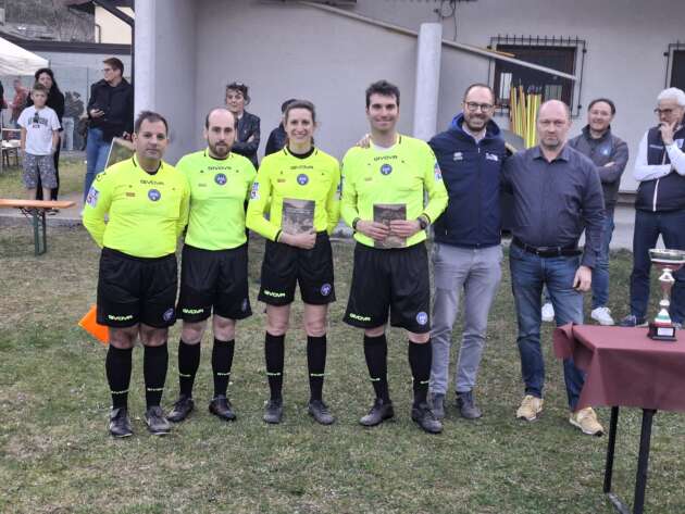 Sono seguite le premiazioni sul campo, presente il Sindaco di Zuglio, Domenico Romano (che ha ricordato con commozione i due ragazzi ai quali è intitolato il torneo), hanno portato il loro saluto anche il Consigliere Regionale Manuele Ferrari, il rappresentante della Delegazione Figc di Tolmezzo, Denis Simonetti (nel corso del torneo sono intervenuti con belle parole anche il Delegato Figc di Tolmezzo Maurizio Plazzotta, ed il Consigliere regionale Figc, Franco Sulli) ed il soddisfattissimo, per la riuscita del Memorial (mai vista tanta gente a Zuglio), presidente della Pro Loco Iulium Carnicum, Mirco Gaspari, che ha curato l’organizzazione dell’evento assieme ai suoi numerosi collaboratori e volontari. Presente anche l’assessore del Comune di Zuglio (che ha patrocinato la manifestazione), Samanta Straulino, il Presidente della Sezione Aia di Tolmezzo, Fabrizio Marchetti (al quale il Comune di Zuglio ha voluto donare un presente unitamente a tutta la squadra arbitrale, composta da Madid Borsetto, Sara De Rosa, Daniele Di Salvo e Andrea Venturini) ed i familiari di Umberto Puntel e Federico Lirussi. Commovente anche il ricordo di Federico ed Umberto che il capitano dell’Arta, Nicola Giarle, ha voluto portare avendo giocato con entrambi (con Federico nelle giovanili del Tolmezzo, con Umberto nell’Arta). Proprio il figlio di Federico, Alessandro, e la mamma, Rita, hanno consegnato, unitamente al Sindaco di Zuglio, la coppa alla squadra vincitrice del Memorial, il Real Imponzo Cadunea.